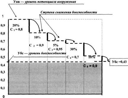 Decrements in each of the factors take the theoretical armaments potential of 1 down to a combat capability level of .43 in the author’s example.