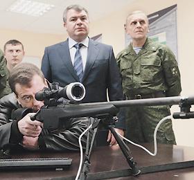 At the center, Medvedev inspected the school where Russia’s snipers are trained, and inspected the weapons they use. The school has practically every type of infantry weapon, including NATO ones.