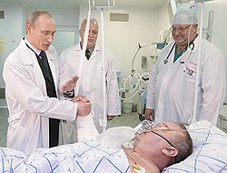 Prime Minister Putin and Defense Minister Serdyukov visited his bedside. Izvestiya reported Putin said Shamanov was in a good mood despite what happened to him. Serdyukov said: