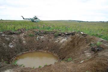 The author says, from the air, this 13,206 square kilometer patch of taiga looks like an unattractive golf course with a great quantity of holes. In Kura’s 55-year history, more than 5,500 “items” have landed here.