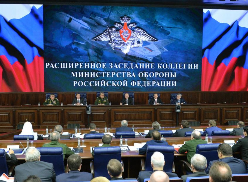 Friday Russian President Vladimir Putin addressed a year-ending expanded meeting of the MOD Collegium. Below are highlights from his speech, and from Defense Minister Sergey Shoygu’s. Putin also met separately with Russia’s Military District (MD) commanders, but no transcript was made available.